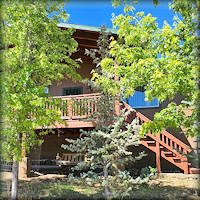 cabin nestled amid the pines and landscaping. 2 Bedrooms downstairs,